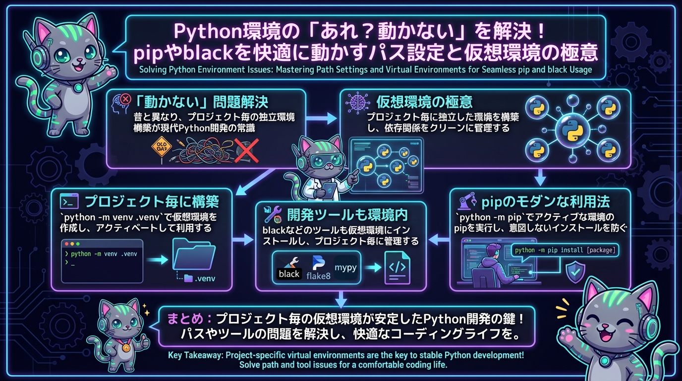 Python環境の「あれ?動かない」を解決!pipやblackを快適に動かすパス設定と仮想環境の極意